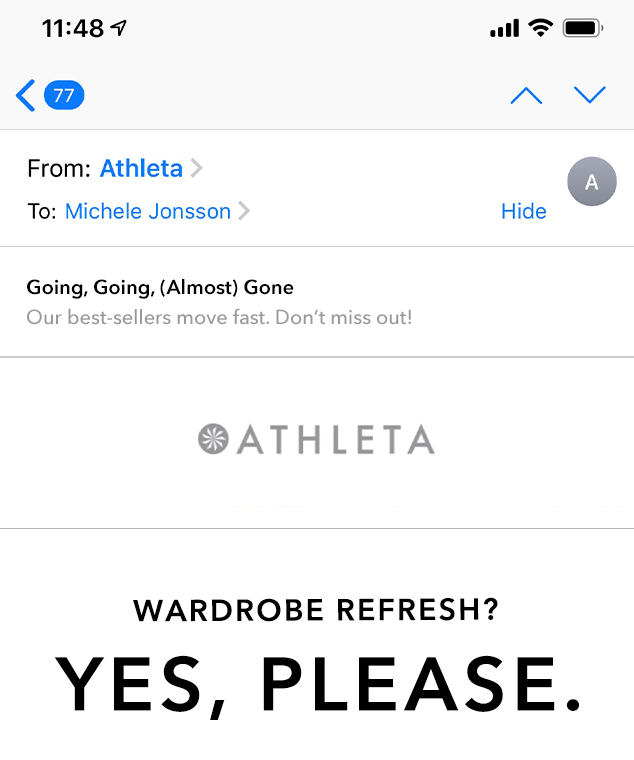 All / AthletaCreative copy that pairs perfect with styles and colors to crave? Yes, please! I touched and tested every element—email, social, site, mobile, and more—with the words to get workout-lovers moving for this best-selling brand. Slide 1 Slide 1 (current slide) Slide 2 Slide 2 (current slide) Slide 3 Slide 3 (current slide) Slide 4 Slide 4 (current slide) Slide 5 Slide 5 (current slide) Slide 6 Slide 6 (current slide) Slide 7 Slide 7 (current slide) Slide 8 Slide 8 (current slide) Slide 9 Slide 9 (current slide) Slide 10 Slide 10 (current slide) Slide 11 Slide 11 (current slide) Slide 12 Slide 12 (current slide) Slide 13 Slide 13 (current slide) Slide 14 Slide 14 (current slide) Slide 15 Slide 15 (current slide) Slide 16 Slide 16 (current slide) Slide 17 Slide 17 (current slide) Slide 18 Slide 18 (current slide) Slide 19 Slide 19 (current slide) Slide 20 Slide 20 (current slide) Slide 21 Slide 21 (current slide) Slide 22 Slide 22 (current slide) Slide 23 Slide 23 (current slide) Slide 24 Slide 24 (current slide) Slide 25 Slide 25 (current slide) Slide 26 Slide 26 (current slide) Slide 27 Slide 27 (current slide) Slide 28 Slide 28 (current slide) Slide 29 Slide 29 (current slide) Slide 30 Slide 30 (current slide) Slide 31 Slide 31 (current slide) Slide 32 Slide 32 (current slide) Slide 33 Slide 33 (current slide) Slide 34 Slide 34 (current slide) Slide 35 Slide 35 (current slide) Slide 36 Slide 36 (current slide) Slide 37 Slide 37 (current slide) Slide 38 Slide 38 (current slide) Slide 39 Slide 39 (current slide) Slide 40 Slide 40 (current slide) Slide 41 Slide 41 (current slide) Slide 42 Slide 42 (current slide) Slide 43 Slide 43 (current slide) Slide 44 Slide 44 (current slide) Slide 45 Slide 45 (current slide) Slide 46 Slide 46 (current slide) Slide 47 Slide 47 (current slide) Slide 48 Slide 48 (current slide) Slide 49 Slide 49 (current slide) Slide 50 Slide 50 (current slide) Slide 51 Slide 51 (current slide) Slide 52 Slide 52 (current slide)